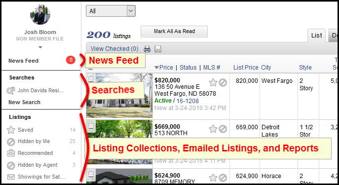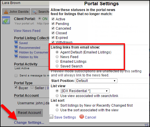 Newsfeed and Portal Changes: May 4 – Choose Landing Page for Subscription Email On May 4, users will be able to decide what happens when their client clicks a link in subscription email. The link can go to the news feed as it does now (this will remain the default), only the listings in the email that was clicked, or all of the listings that match the saved search. In addition to this, the Portal menu design will change to allow easier access to the user’s saved searches. Users Can Customize Their Portal Preferences