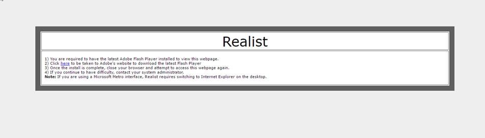 Apple Safari 10 – Changes to Adobe Flash affecting Realist This is for Apple Laptops/Desktops running Mac OS 10.10 (Yosemite) , 10.11 (El Capitan), 10.12 (Sierra) that have updated to Safari 10. At this time, these settings are not needed for iPads. With recent updates to Apple’s Safari 10 browser, Apple has changed the way that Safari runs Adobe Flash Content. The default is actually for all flash content to be disabled. If you are running Safari and want to use the Realist System, you must enable Adobe Flash. If you do not, you’ll see the following message when trying to access Realist: Below, you’ll find some instructions on adding this exception to Chrome’s settings. If you need assistance, please contact technical support at 614-475-4000 Mon-Fri 8:30a-5:00p or by email at techsupport@columbusrealtors.com To enable Adobe Flash within Safari 10.