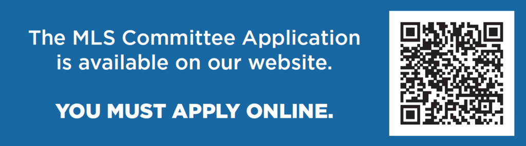 Deadline: MLS Committee Applications – Oct. 31- 5pm Time is running out to be considered for the MLS Committee for 2024. Applications are due October 31st at 5pm. Ever wonder why things change in the MLS? Have you thought about serving on the MLS Committee and wonder how that’s done? Read more details about the appointment process or scan the QR code below to throw your hat in the ring: ![]()