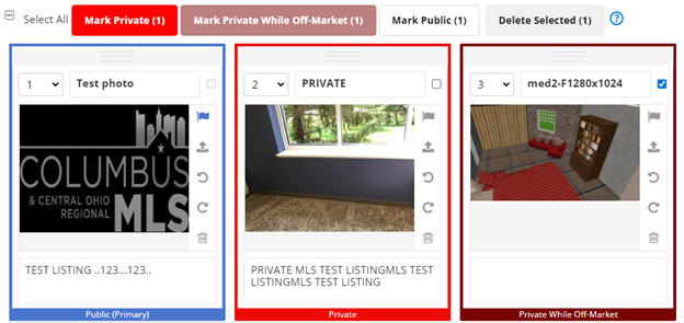 ![]() Photos, videos, and virtual tours marked Private in MLS are viewable only by MLS members. They are not available to the public via the consumer portal, subscription emails, shared links, IDX websites, or third-party sites. Identifying a Private Photo, Video, or Virtual Tour ![]() A Private flag is displayed on the media in search results on Flexmls web and Flexmls Pro for iOS/Android. Private photos are displayed only on the private version of listing reports. Private media is not available via the consumer portal or app.